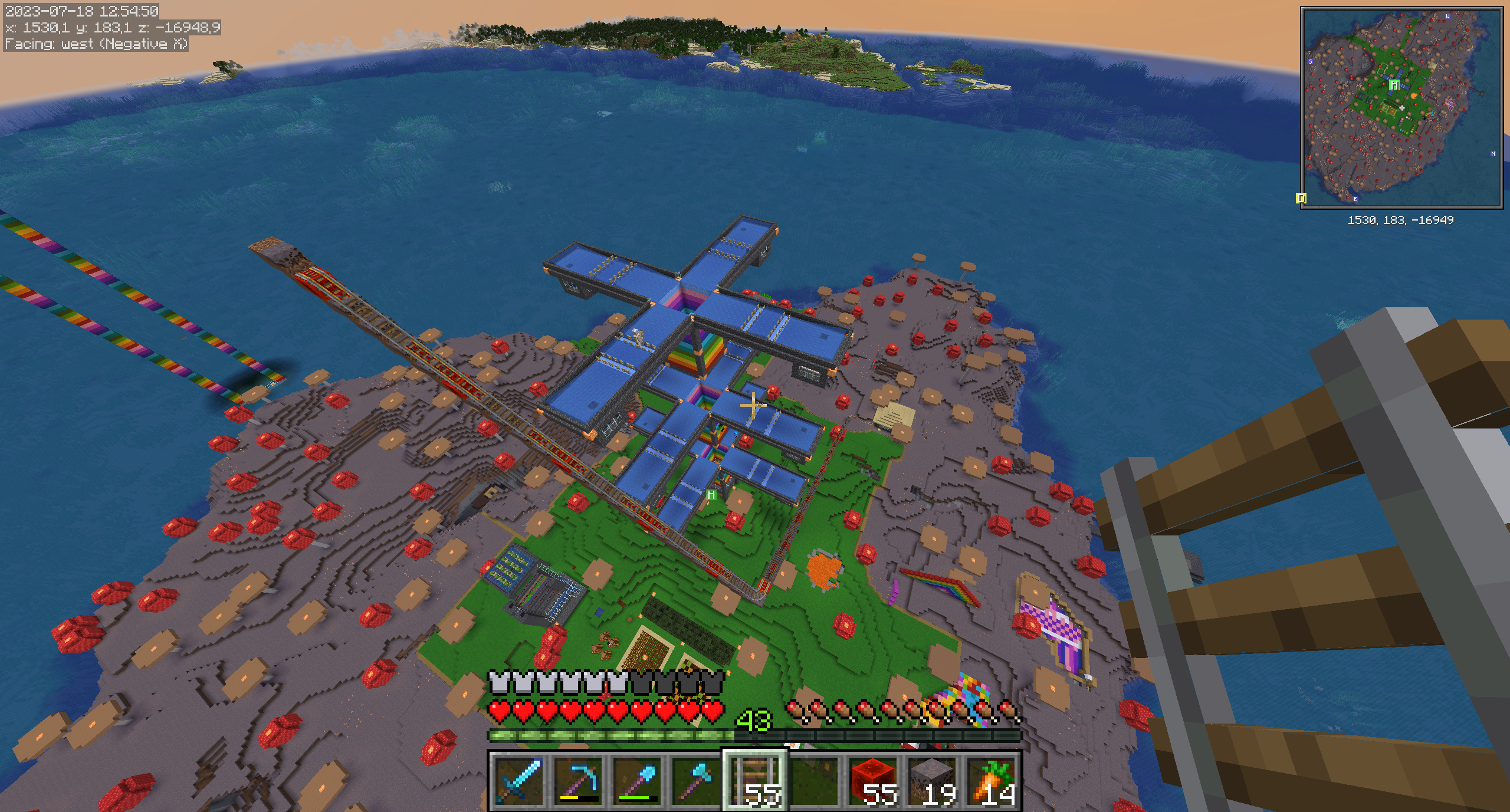 I should probably build a shulker farm next so I can put the iron into shulkerbox loaders. Which means getting ender pearls, getting blaze powder, finding the end portal, unlocking the portal, killing the dragon, finding an end city, getting shulkers through one of those waypoint portals to the main end island and then into the overworld, then into the nether and to my base and finally get it into a working shulker farm.